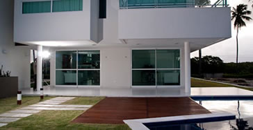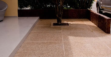 Ambientes interno e externo utilizando os revestimentos Fulget e Village.