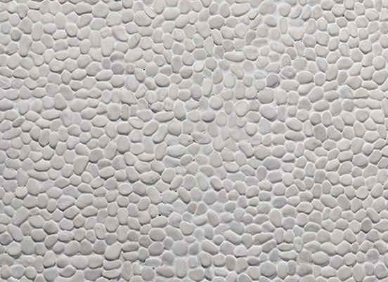 Piso atérmico, com seixos de mármore branco. Ideal para áreas molhadas (DECKS).
